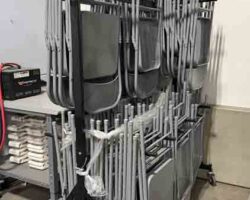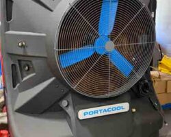 (2) PORTACOOL EVAPORATIVE COOLERS, (7) GLOBAL FLOOR FANS, PALLET JACKS, PORTABLE TABLES, METAL CARTS, CHAIRS, BINS, OFFICE FURNITURE AND MORE!